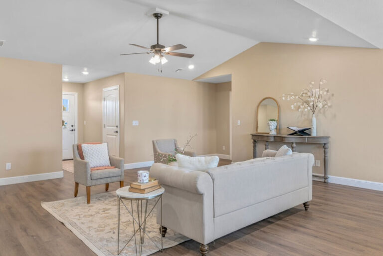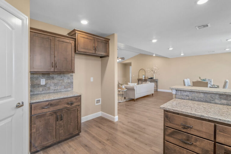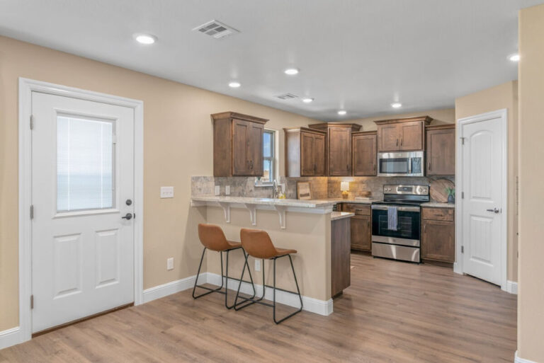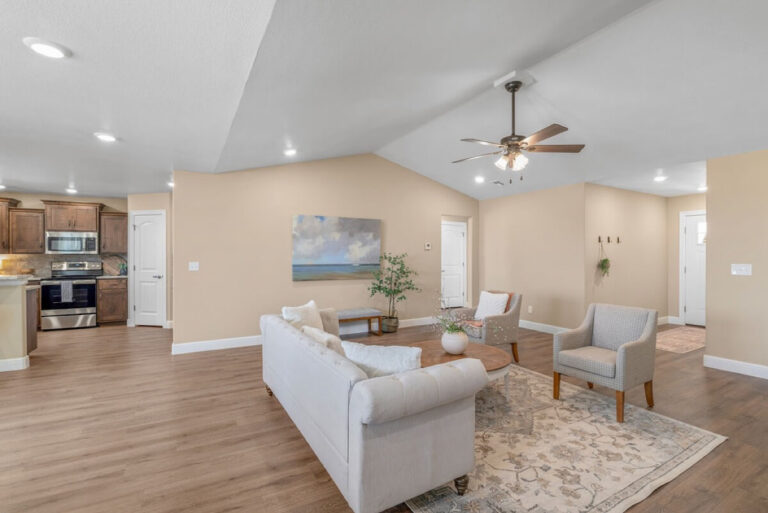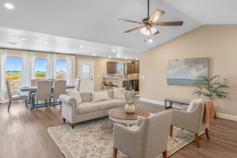 square feet of living space. The modernized kitchen sits off of the spacious living room and