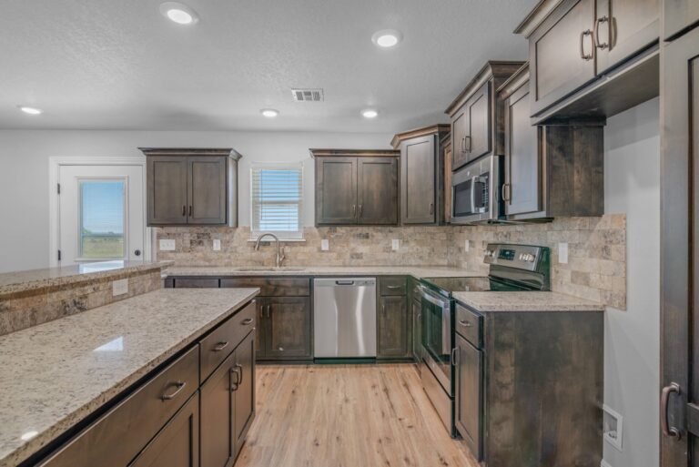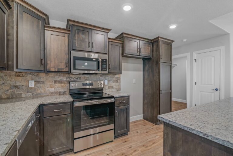 garage. Granite counters and custom cabinetry throughout. The kitchen plays host to stainless